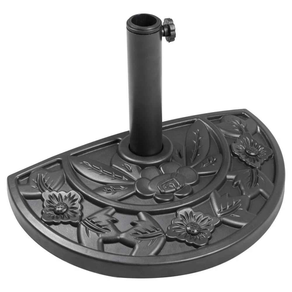 - SEMI-CIRCLE SHAPE – This design is perfect for small spaces such as balconies and courtyards and works extremely well with semi circular parasols. Heavy duty, full parasols would not be recommended with this base weight